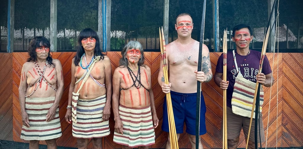 It's a language few outside their remote jungle community understand, and yet, those syllables now echo in my heart like a song I’ll never forget. Spending 11 days living alongside these extraordinary human beings has been nothing short of life-altering. There are no words quite sufficient to express the depth of presence, humility, and wisdom I witnessed in the Matsés people. The leaders move with quiet strength—a deep, rooted confidence that doesn’t shout, but resonates. The women radiate joy, crafting with their hands and weaving laughter into each moment. The men, grounded and fearless, carry a humility that softens even their most warrior-like qualities. These are the attributes we all yearn to embody. And in their presence, I felt both small and profoundly expanded.